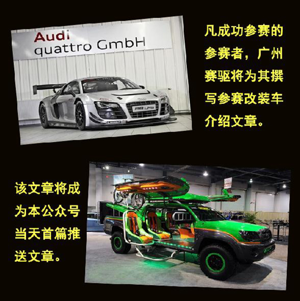 “超級愛改裝大賽”火熱報名中!為方便收集請留下以下資料;或者熱線咨詢廣州賽驅(qū):020-29818290