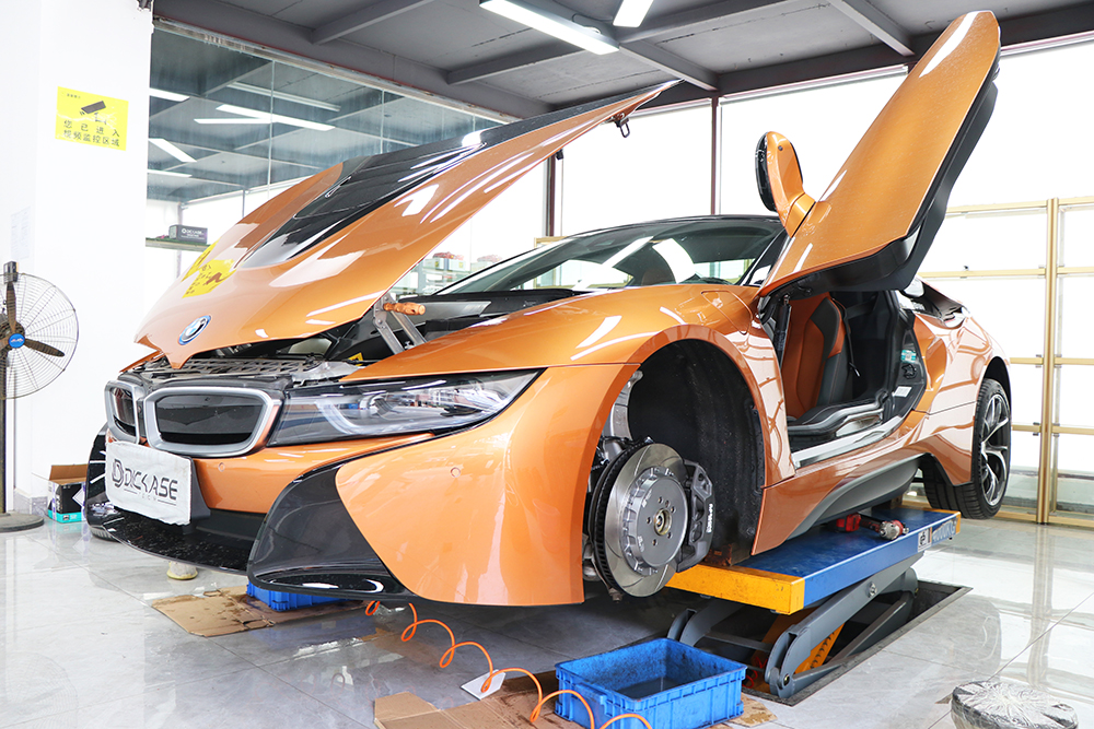 寶馬i8原廠剎車就是4活塞卡鉗,brembo為其代工生產的M鮑魚,剎車效果都不算差,但是車主追求更好的剎車性能,所以車主準備入手一套剎車效果更好的競技版卡鉗ap9665。