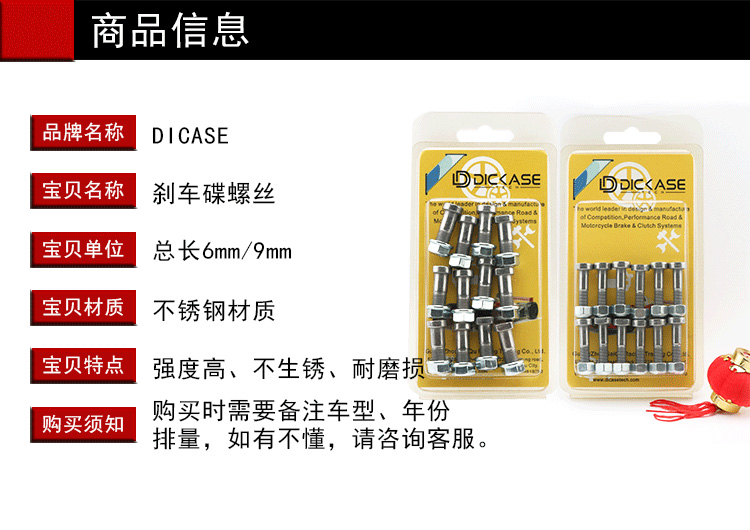 DICASE螺絲 汽車剎車碟改裝專用合頭螺絲 加固件